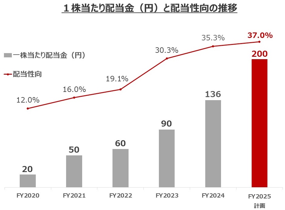 当社の利益配分につきましては、収益状況のみならず、当社グループの成長に向けた各種の投資等、今後の事業戦略および事業展開も勘案した資本政策に基づき、株主の皆様への安定継続した配当を行うことを基本方針としております。
