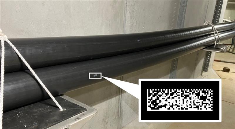 また、電力ケーブル敷設後の保守・点検時において、現地では敷設された電力ケーブルの製品履歴を把握することは容易ではありませんでした。これからは工事人材の不足が深刻化する中、さらにこれらの管理が困難となることが予想されます。この課題解決策の一つとして、当社は、電力製品に製品の個体情報を識別できる二次元コードを印字し、開発した専用アプリを介して読み取ることで、現地で電力ケーブルに関する情報を確認できるシステムを構築しました。