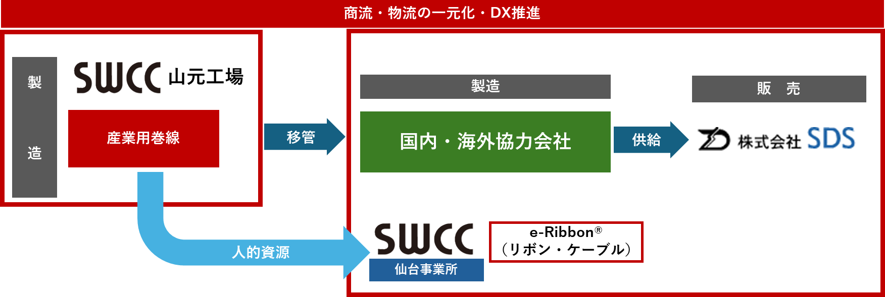 SWCC株式会社(本社:神奈川県川崎市、代表取締役 CEO 社長執行役員:小又 哲夫、以下「当社」)は、産業用巻線の事業構造改革として、生産拠点の再構築のため山元工場(宮城県亘理郡山元町)を閉鎖し、さらには、商流をグループ会社である株式会社SDS(以下「SDS」)に集約することによる販売体制の再編を決定しましたのでお知らせいたします。